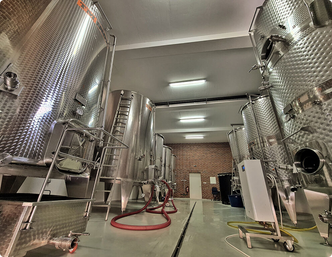Der Produktionsprozess unserer Weine wird sorgfältig überwacht und alle verfügbaren modernen Technologien werden eingesetzt, um den perfekten Wein herzustellen. Wir beobachten den Geschmack moderner Trends, um mit unserem Wein die Spitze zu erreichen.